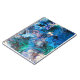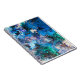Este caderno espiral brilhante mostra a trabalho de arte 'Ondas giratórias' - uma peça de tinta vazante na qual as cores se misturam como água em espiral.