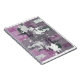 Notebook espiral de arte abstrato moderna com textura roxa detalhada.