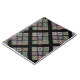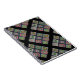 Padrão afegão de nove adesivos em crochê. Foto de antigo afegão trabalhado em "praças de vovó", usando uma multidão de fios coloridos, os nove quadrados são repetidos com uma fronteira negra entre eles. O patch está configurado na diagonal.