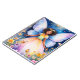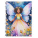 Notebook de 6,5 x 8,75 polegadas com uma jovem garota com asas de borboleta em um jardim vibrante, cercado por flores coloridas e estrelas brilhantes. Seu vestido é multicolorido, e ela veste uma coroa de flores em seu cabelo encaracolado.
