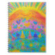 Um notebook espiral com trabalho de arte de processo intuitivo original da artista Penny Makris