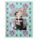 Tuxedo Cat Engraçado Notebook De Dança Feliz, Púrpura Floral Púrpura E Feliz. Este notebook seria um presente tão bem-vindo para qualquer amante de os animais. Projetado a partir da minha arte e foto originais.