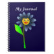 A design mostra uma flor bonita desenhada e pintada com Inkscape por Ulla Hennig. O design é colocado sobre um fundo azul escuro, junto com o título "Meu Diário". Você pode mudar facilmente a cor do plano de fundo e inserir suas próprias palavras clicando no botão "personalizá-lo".