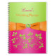 Este caderno personalizável, cor-de-rosa-quente, laranja e verde limão, do planejador de casamento floral, tem uma fita IMPRESSA EM laranja com um broche de joia IMPRESSO EM gemstone e diamantes que combina com o convite de casamento mostrado abaixo. Ele tem modelo para adicionar seu próprio texto. Se precisar de ajuda para personalizar este item, envie um e-mail para niteowlstudio@gmail.com para obter assistência.