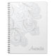 Um novo e incrível produto da Zazzle! Este notebook faria um diário de excelentes, um diário ou um milhão de outros usos. Super presente para muitas ocasiões. A design tem uma aparência esquisita com suas cinzas e espiral branca florescendo, que se senta sobre um fundo bolinhas fraco. O design principal tem um efeito sombra para se destacar da página. Espaço para personalizá-lo com seu nome no canto inferior direito.