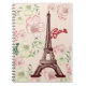 Um novo e incrível produto da Zazzle! Este notebook faria um diário de excelentes, um diário ou um milhão de outros usos. Super presente para muitas ocasiões. O design tem um padrão floral de cor rosa e verde com a Torre Eiffel em primeiro plano e a palavra Paris escrita em rosa escuro ou vermelho.