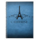 Notebook francês florescente, mas elegante, Vintage, em azul real, com um design de Torre Eiffel embelezado por picos e pontos chicos e um fundo texturizado em papel falso. Este único notebook temático parisiense lhe dá um lugar para anotar notas com um falso talho francês! Fácil de personalizar, basta adicionar o texto personalizado de sua escolha no campo de texto fornecido. Clique no botão "Personalizar a TI" para encontrar opções adicionais de personalização.