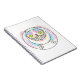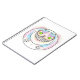 Notebook espiral com um gato gordo sorrindo como um Gato de Cheshire. Um gato geométrico e gordo.