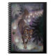 coiote original de pintura digital deixando pegadas de luz atrás dele enquanto ele progride pelo caminho da floresta à noite. Arte por Erin Cooper