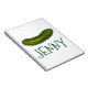 O notebook apresenta uma ilustração original de um picles verde-cosher crocante. Simplesmente personalize com o nome do seu alimento favorito!