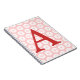 Grande letra em frente a um padrão de flocos de neve. Os flocos de neve são replicados através do cobrir. A cor padrão da letra é vermelha, a fonte da imagem de fundo é rosa.