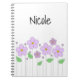 Um caderno com flores lilás e nome. Personalize o notebook com seu nome especial ou texto, cor de fundo, entre outras opções.