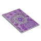 Este design de círculo concêntrico prateado e roxo, inspirado pela médi indiana e figurinos de anime japonês, apresenta camadas com pétalas de lótus, folhas, paisley e uma roda ornamental ao redor de tudo isso.