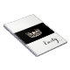 Notebook mostrado com uma impressão de foto de um impressão colorido prateado brilhante em fundo preto e um nome personalizado. Notebook mostrado em branco, mas escolha sua cor de fundo. Personalize este item e altere o nome para o seu, retire ou adquira conforme mostrado.