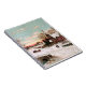 Notebook de Natal com a pintura de Andrew Melrose da véspera de Natal no início dos anos 1900, fora de uma pequena igreja de neve.