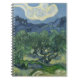 Notebook Olive Trees. Vincent van Gogh pintou pelo menos 18 pinturas de oliveiras, principalmente em Santo-Rémy em 1889. A seu pedido, viveu num asilo lá entre maio de 1889 e maio de 1890 pintando os jardins do asilo e, quando teve permissão para se aventurar fora de seus muros, nas proximidades de oliveiras, ciprestes e campos de trigo.