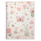 Caderno Espiral Notebook Pink Flowers and Butterflies