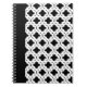 Um padrão clássico preto e branco decora este notebook na moda. Este notebook é excelente para escola, viagem, negócios etc... O design é de arte original.