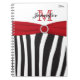 Caderno Espiral Notebook preto vermelho branco zebra em faixa