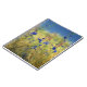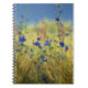 A chicória azul vívida e as flores de milho florescem num campo ouro de grama sob um céu azul pálido. O fundo loiro e verde também é interrompido pelo cintilante rosa das flores de capim-comum.
