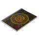 Esta mandala tipógrafa Scorpio apresenta uma pedra rubi cercada pelo símbolo da placa, a constelação, e o símbolo alquímico da Água entre filigrana e tecelagem.