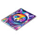 Um design de raposa de espaço divertido em um notebook.