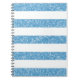 Notebook Trendy e divertido Sparkle Glitter Look Stripes. Este design apresenta um padrão de faixa de aparência brilhante e falsa em azul. Adicione texto a este design para lhe dar um toque pessoal.