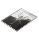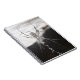 Um notebook com foto de uma aranha em uma teia de aranha.