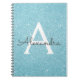 Caderno Espiral Notebook Teal Aqua Blue Glitter Sparkle Monograma