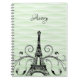 Caderno Espiral Notebook Torre Eiffel Verde Floreado