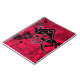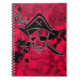 Crânio e espada pirata impressos em fundo vermelho e preto espalhado.