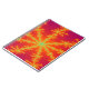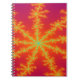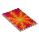 Este incrível notebook.apresenta uma imagem fractal que lembra uma tempestade em Vênus. Ele tem um fundo laranja brilhante com linhas amarelas brilhantes saindo do centro que se parecem com raio queimando. No centro de cada raio há uma linha azul que me lembrou de uma veia que resultou no título "Venous Thunderstorm".
