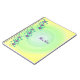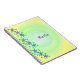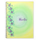 O padrão bonito de flores roxas com folhas verdes faz a borda ao longo do lado esquerdo desses cadernos personalizados. O fundo é um verde-claro pastel e amarelo num design circular. Há um marcador de modelo para o nome de uma pessoa, etc., em letras roxas, à direita das flores. Obrigado por comprar em CherylsArt no Zazzle.
