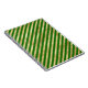 Este notebook tem faixas verdes festivas e diagonais douradas, com vários estilos de papel disponíveis.