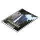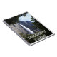 Este notebook apresenta uma foto de Yosemite Falls enquadrada por árvores, tirada na trilha até o topo das quedas.