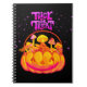 É design de festas de halloween celebrando o próximo Halloween. Este kawaii desenhado à mão e uma ilustração divertida apresenta um halloween feliz, cogumelos de abóbora e truques ou travessuras.