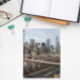 Um notebook com tamanho pessoal, encadernado em espiral, que apresenta uma foto da linha do horizonte de Nova Iorque Lower Manhattan, como visto na ponte do Brooklyn. Use como um diário ou para manter notas importantes.