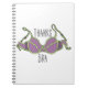 Um sutiã verde limão roxo e chave, com o texto dizendo, "Obrigados Bra."