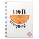 Caderno Espiral Odeio Tudo, Kawaii Orange