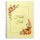 Abrace a estação com este notebook Hello Fall. Apresentando um roteiro com letras manuais rodeado por abóboras aquáticas, bolotas e folhas de outono, ele é perfeito para jornalismo, planejamento ou doação. Um toque aconchegante para quem ama as vibrações do outono.