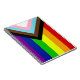 A variação "Progresso" da bandeira do Arco-íris acrescenta um guião ao longo da lista que apresenta faixas pretas, castanhas, azuis-claro, rosa e brancas para trazer essas comunidades (pessoas marginalizadas de cor, indivíduos trans, e aqueles que vivem com HIV/AIDS e aqueles que foram perdidos) para a frente. "a seta aponta para a direita para mostrar o movimento à frente, enquanto está na borda esquerda mostra que ainda é preciso fazer progresso."