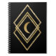 Folhas de ouro e brilho foram digitalmente simuladas em um design geométrico com a lua.