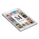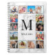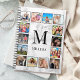 Crie seu próprio notebook personalizado de colagem de 12 fotos com suas imagens personalizadas, seu monograma e seu nome em um na moda elegante fundo de mármore branco.
