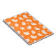 Este design apresenta um padrão divertido com tema de Halloween com um fundo laranja vibrante. O design exibe uma variedade de fantasmas fofos e cartoonizados em tons suaves esbranquiçados. Cada fantasma tem uma expressão única e cativante, variando de alegre e sorridente a ligeiramente surpreso ou sonolento. Espalhadas entre os fantasmas estão pequenas formas de estrelas caprichosas em um tom amarelo pálido, adicionando um toque de magia e diversão ao design geral. O padrão exala um espírito leve e festivo, perfeito para a temporada de Halloween.