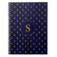 Caderno Espiral Padrão de Fleur de Lis Dourado sobre Azul Real