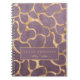 Notebook elegante, profissional ou pessoal, de aparência luxuosa moderna, para decorador de interiores | designer | arquiteto | artista | salão | moda | estilista em fundo púrpura de ameixa escura, apresentando um padrão de abstrato de folha de ouro falso branco e um rótulo retangular geométrico. Personalize-o com seu nome e texto!