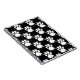 Um padrão de impressão de pata de cão branco com efeito de salga de tinta em um fundo preto. Design original.