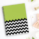 Caderno Espiral Padrão de ziguezague preto e branco, Chevron, verd