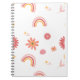 Caderno Espiral Padrão Pastel Floral & Arco-íris Fofo