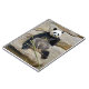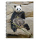 Panda gigante (Ailuropoda melanoleuca) vista da frente e comendo bambu sentado em rochas